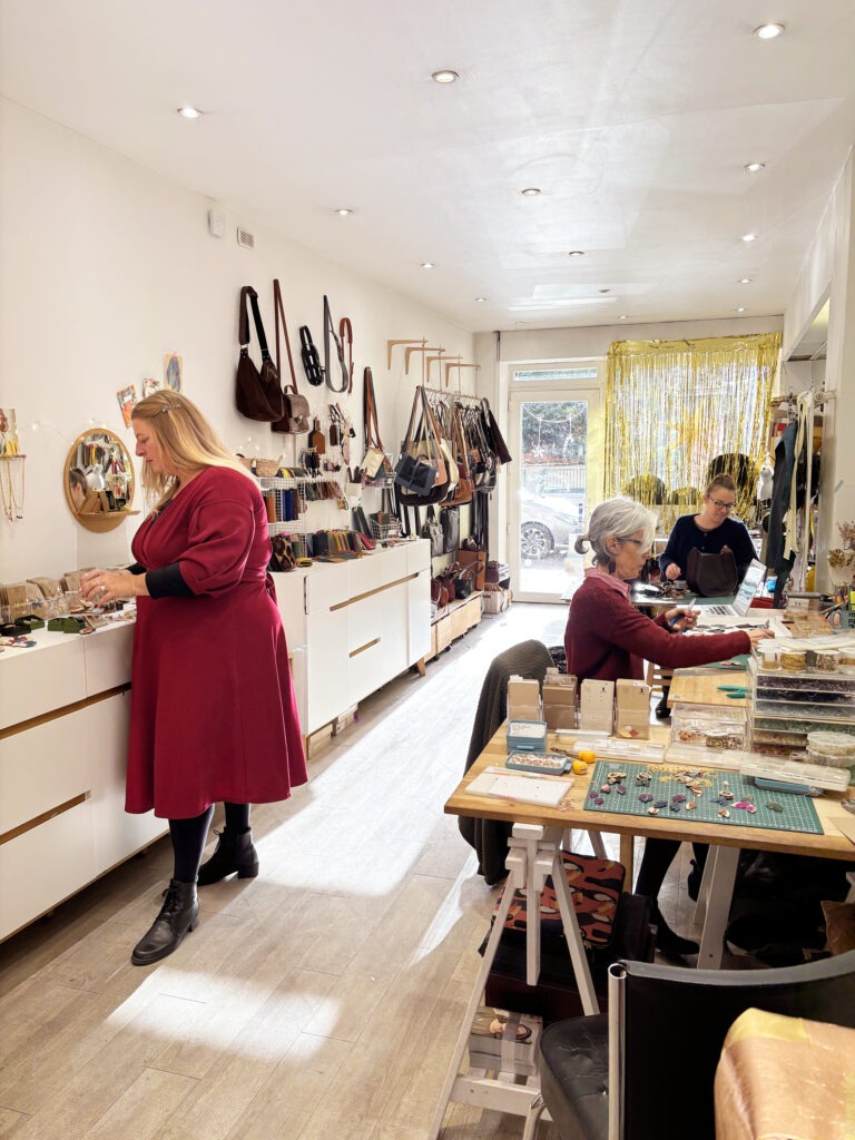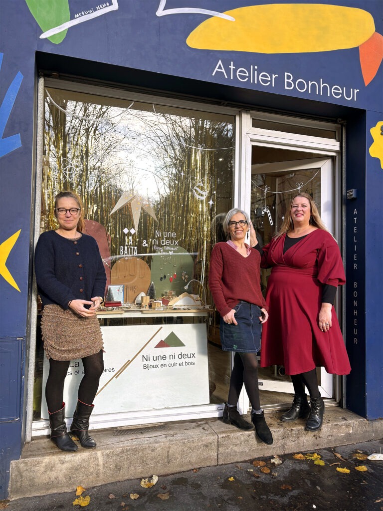 L’union fait la force chez trois artisanes du 20e arrondissement. Valérie, maroquinière et créatrice de la marque La Baïta, Nolwenn et Songül, créatrices de Ni une ni deux bijoux, partagent depuis 8 ans, une même boutique-atelier, située avenue Gambetta et joliment prénommée « Atelier Bonheur ». Une adresse à inclure dans votre shopping de Noël, pour la qualité des créations et des matières, la personnalisation possible et les prix raisonnables.