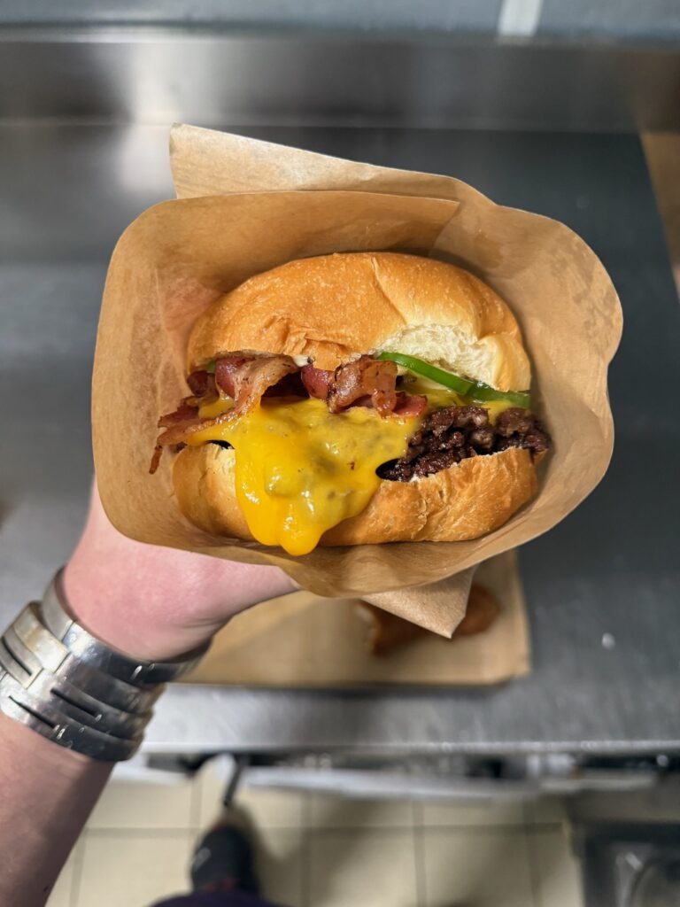 L’idée était de rester fidèle à l’ADN de l’adresse : faire du 100 % maison (pain, frites, sauces, steak veggie…) et être dans la générosité en matière de portion (“j’aime quand ça dégueule de cheddar et que le client repart repu”, confie Antonin). Le tout à des prix compétitifs, puisque l’offre midi à emporter comprend un burger classique (ou BBQ) et des frites pour 10 €. Pendant le Covid, l’affaire décolle (“l’équipe s’est faite exploser chaque jour”), ce qui leur permet de s’agrandir en prenant un local plus vaste à Montreuil en 2020, puis à Montparnasse, en 2022. De quoi faire livrer ces burgers du love dans encore plus de foyers parisiens.