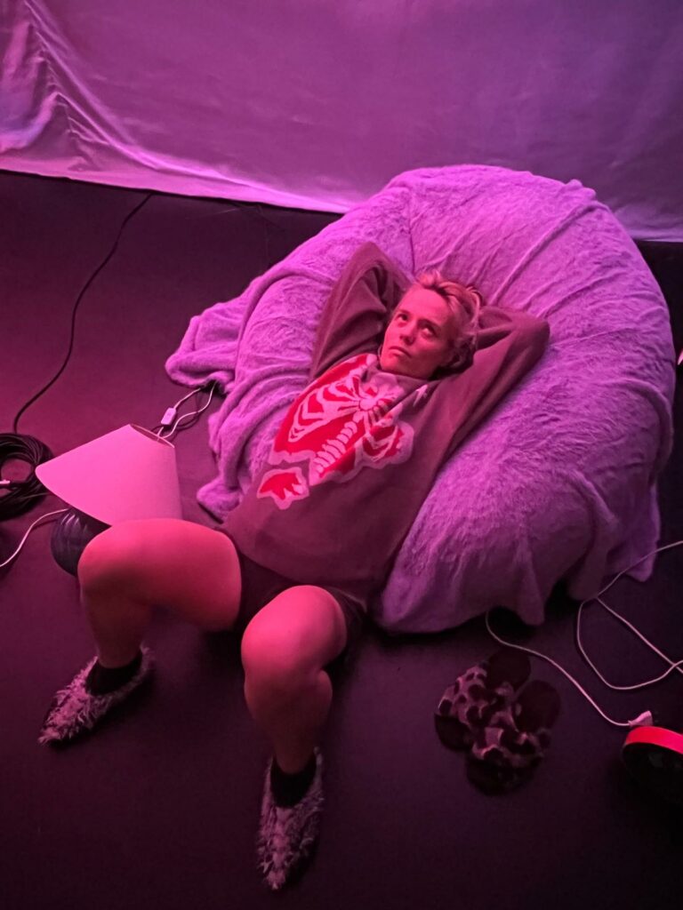 Dans la seconde salle du théâtre, “Ce qui m’a pris” dresse le portrait fragmentaire d’une animatrice périscolaire de presque 30 ans emportée dans une spirale d’obsessions, de culpabilité et de quête désespérée de sens. En quatre saisons, elle traverse rêves hallucinatoires, isolement extrême et confessions frontales. Un seule-en-scène vertigineux où se mêlent saints, démons, listes de courses, Reine des Neiges, pornographie et vidéos YouTube, dans un théâtre empruntant au romanesque comme au stand-up, à la performance et à l’art du collage brut.