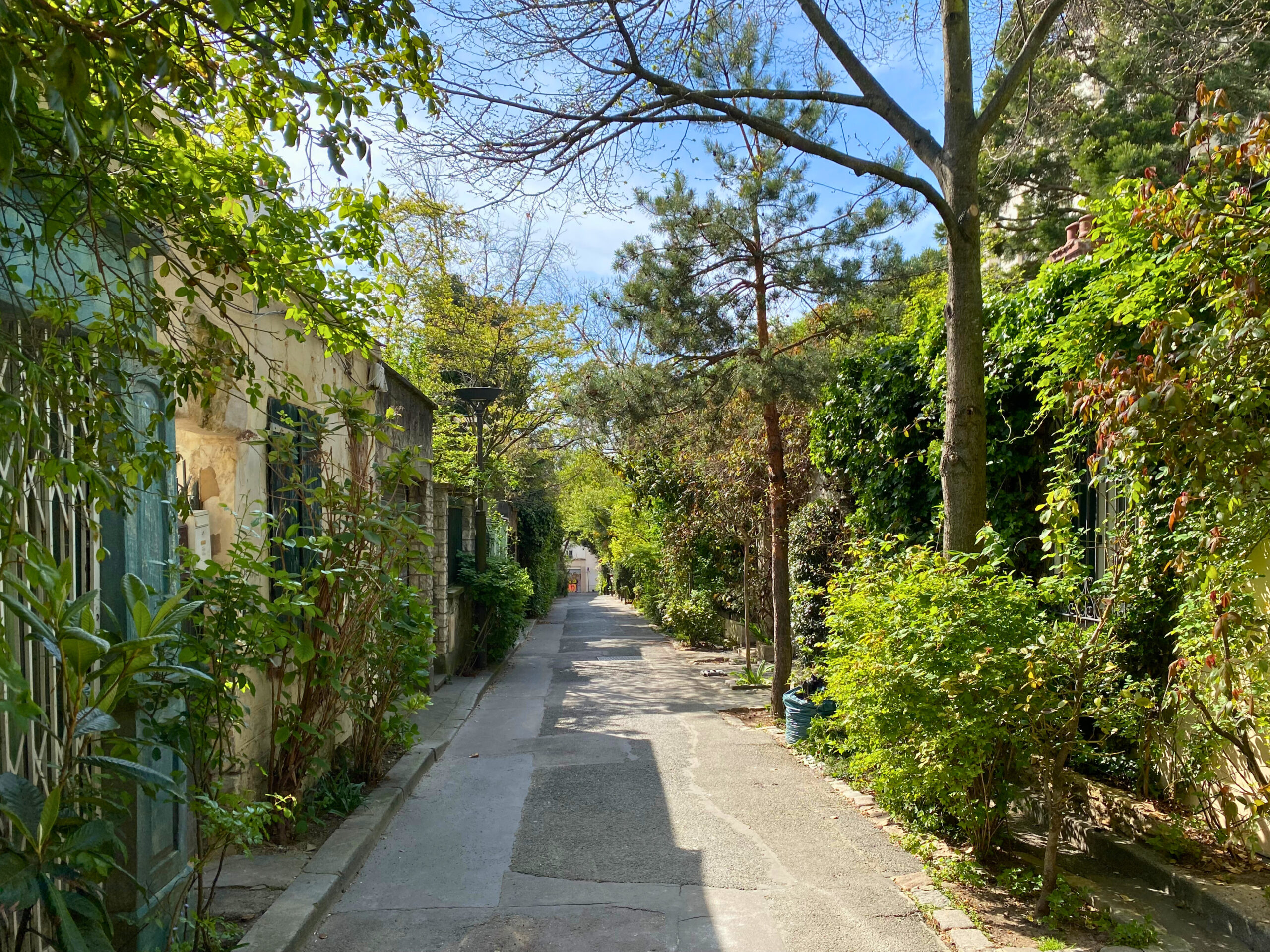 Au cœur du bouillonnant quartier de Belleville, le dépaysement est assuré par la Villa de l’Ermitage. Longue d’à peine 150 mètres, cette petite allée verdoyante est bordée de portails en fer forgé et de maisons aux volets colorés. Rare vestige de l’ancien Est parisien ouvrier, cette ruelle peut compter sur la ténacité de ses riverains qui se battent pour sa préservation et sa défense face aux projets de la Ville de Paris et de promoteurs immobiliers.