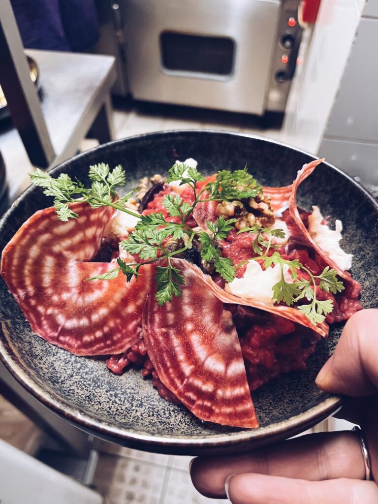 Risotto à la betterave, gorgonzola et noix