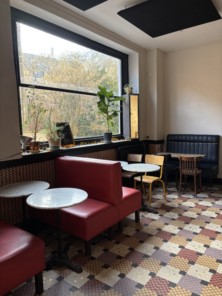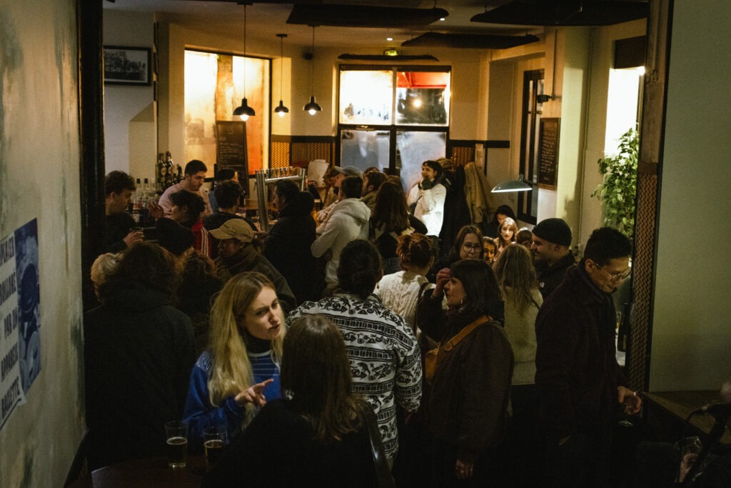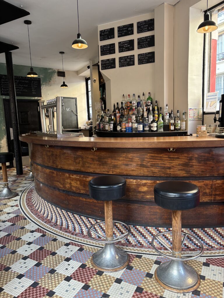 Né en banlieue parisienne, ce trentenaire vit depuis 2019 dans un 20e arrondissement qu’il affectionne. Avant cela, pendant 10 ans, il a travaillé dans un pub irlandais à Londres. Aujourd’hui, il se lance dans sa propre aventure. “Ce qui m’a plu ici, c’est l’imposant comptoir en bois, qui rappelle les pubs, et les sols et murs en mosaïques datant des années 60/70, qui ont beaucoup de charme. On a juste eu à éclaircir les murs et à ouvrir les rideaux pour moderniser l’endroit”. Ici, c’est déco engagée – affiches du Grand Soulagement, sérigraphies de Dugudus, exemplaires de La Déferlante… et safe place garantie.
