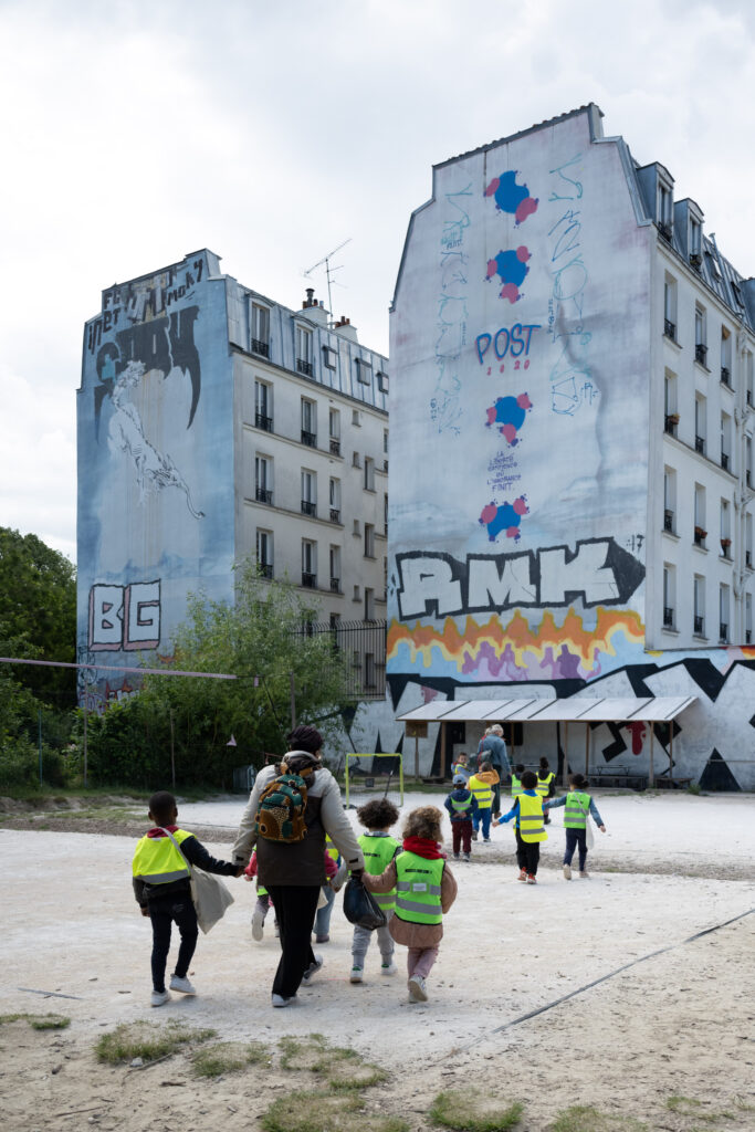 Âgés de trois à quatre ans, ces petits Parisiens n’ont pas besoin d’emprunter la voiture ou les transports pour prendre leur dose de nature. Une matinée par semaine, ils quittent leur école du 20e arrondissement de Paris et marchent 10 minutes pour rejoindre une friche – le TEP Ménilmontant – située face au cimetière du Père-Lachaise. Là, une zone boisée d’arbustes, les buddleias, prend des allures de forêt enchantée.