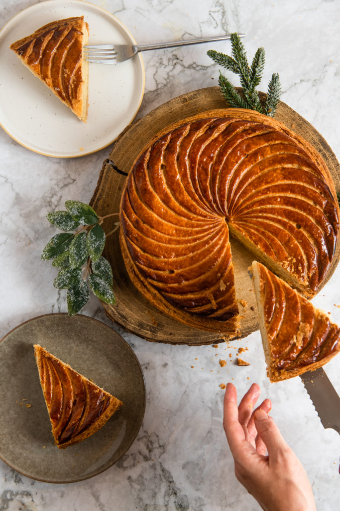 3/ Chez Petit Grain. Galette à la frangipane amandes, marrons et zeste de citron. 4 à 6 personnes: 34 € 8 à 10 personnes : 42 €, à la part: 4,20 €. Réservation sur place uniquement. 7, rue Dénoyez.