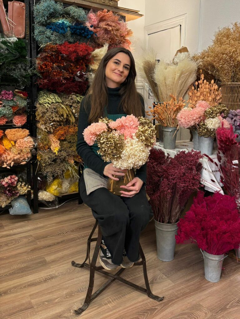 Originaire du “Vexin profond, où ne passe que deux bus par jour”, Fanny s’installe à Paris, en 2013. Avec deux amies d’enfance, elle emménage rue des Maraîchers pour y suivre un BTS communication puis un master 2 en marketing digital. Une fois dans la vie active, son job ne la passionne guère… contrairement à l’atelier couronnes de fleurs offert par ses parents. Une révélation qui va donner naissance à @fannyetlesfleurs.