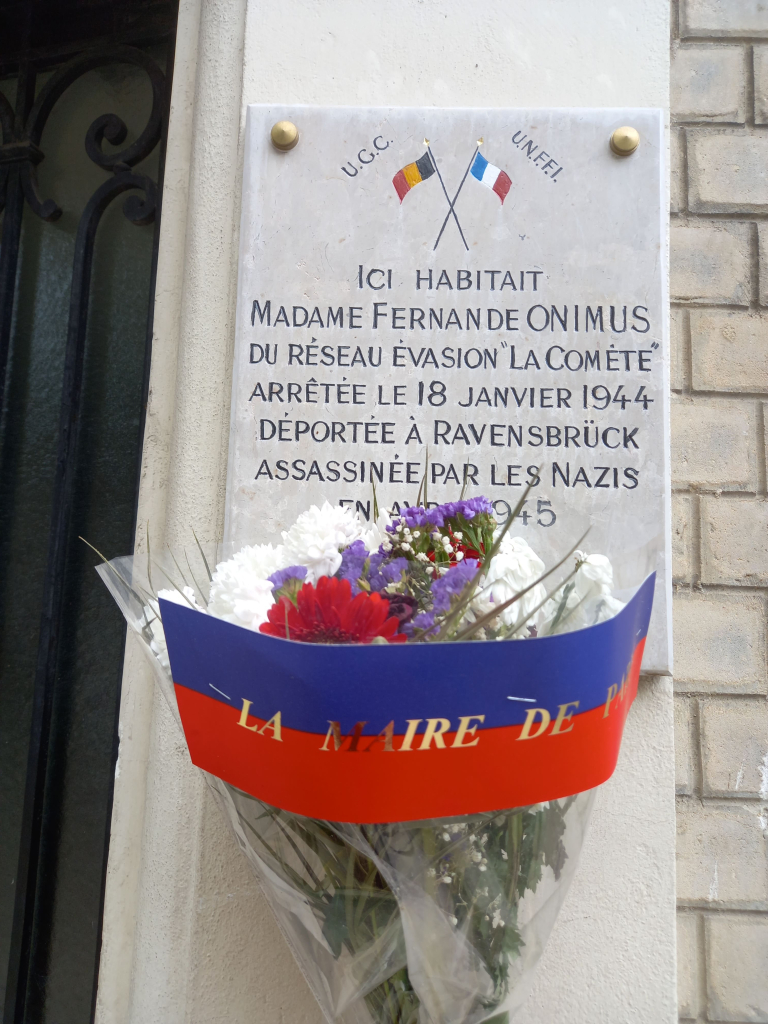 Fernande Onimus (née Phal) voit le jour le 9 octobre 1899 à Charenton-le-Pont. Elle est la fille d’un employé de chemin de fer et d’une institutrice. Elle habitait 88 rue des Rondeaux (n°84 actuellement) à Paris 20e, avec son mari Robert et leurs deux enfants. En juillet 1943, elle devient, avec Odile Verhulst son amie du quartier, cheffe-hébergeuse du 20e pour Comète, un réseau de résistance créé par une jeune belge, Andrée de Jong, pour récupérer, héberger, accompagner et exfiltrer les aviateurs alliés tombés en Belgique ou en France, jusqu’en Espagne via la frontière basque, et leur permettre ensuite de rallier Gibraltar alors sous contrôle britannique.