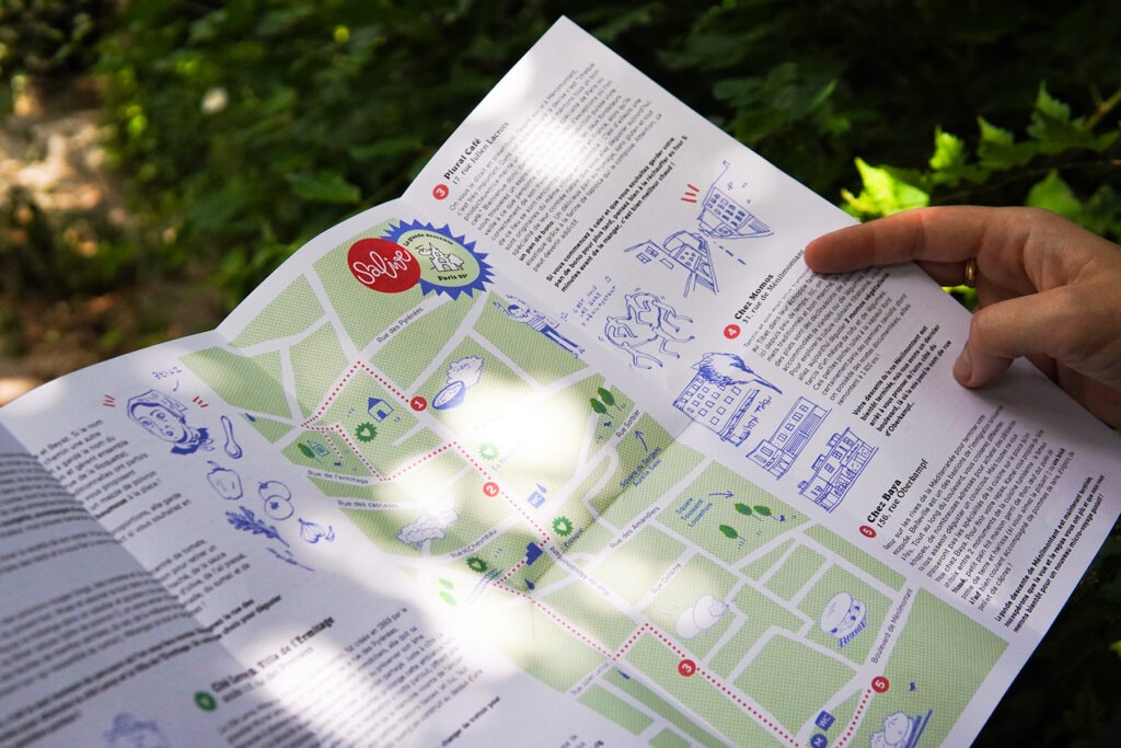 « Des micro-voyages gustatifs », voici le très chouette concept imaginé par Salive, une agence culinaire. Une idée – « à mi-chemin entre le food tour et la chasse aux trésors » née pendant la crise sanitaire, où il a fallu imaginer pour les restaurateurs de nouvelles manières de travailler. Le fonctionnement des balades est très simple : on achète son billet en ligne, puis on se rend à une première adresse, où l’on récupère une carte et des couverts. Vous n’aurez qu’à suivre la suite du parcours, avec des infos sur le quartier et plusieurs haltes prévues chez des restaurateurs du cru.