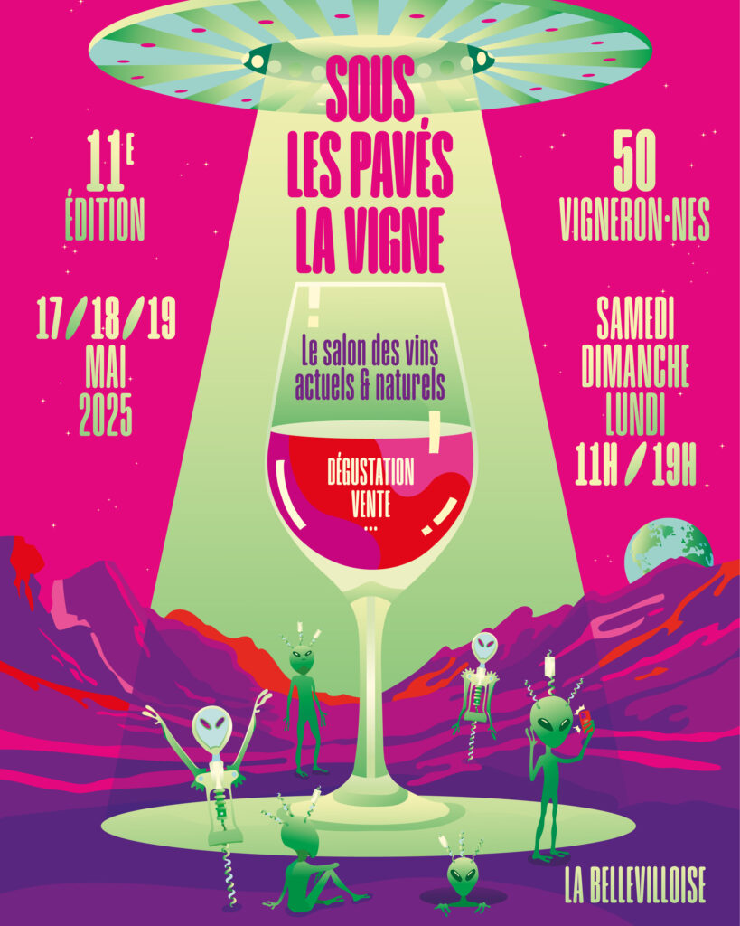 >> Sous les pavés la vigne, La Bellevilloise 19-21 rue Boyer, Paris 20e. Samedi 17, dimanche 18 et lundi 19 mai, de 11h à 19h. (Entrée 10 €, verre griffe offert). Des invitations (5 x 2 pass-3 jours) sont à gagner – sur tirage au sort – dans les commentaires de notre post Instagram.