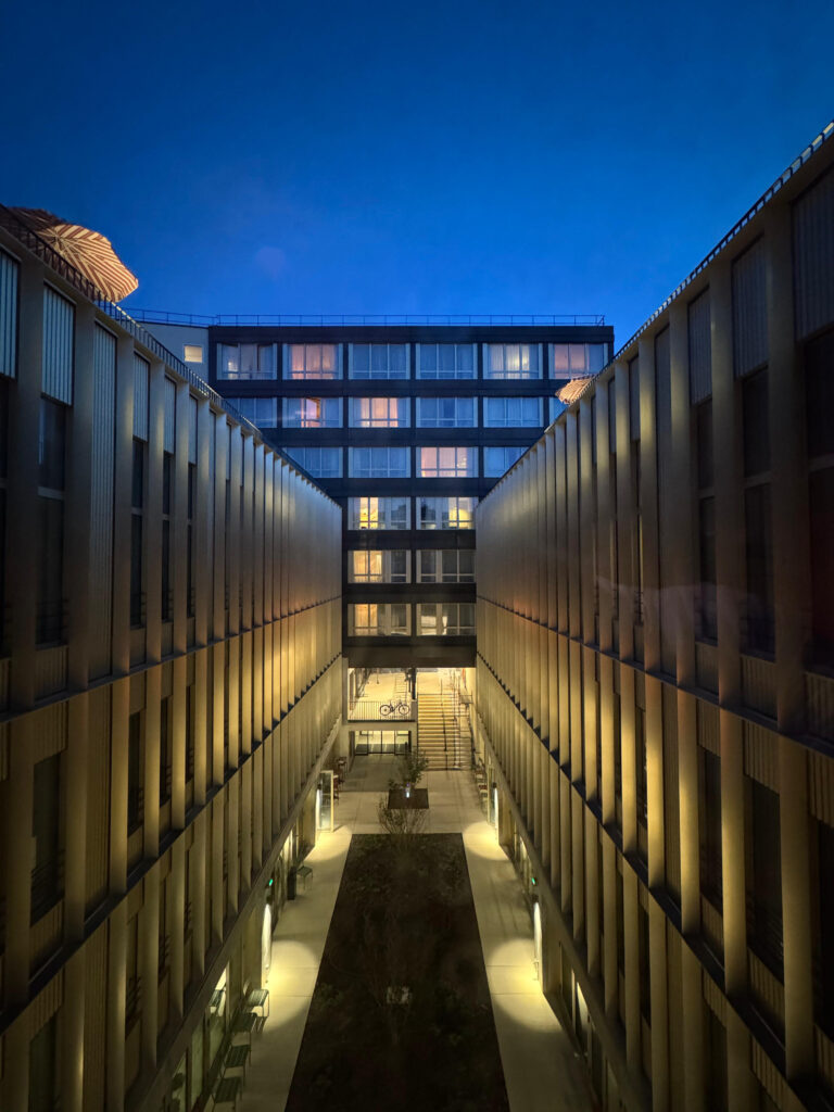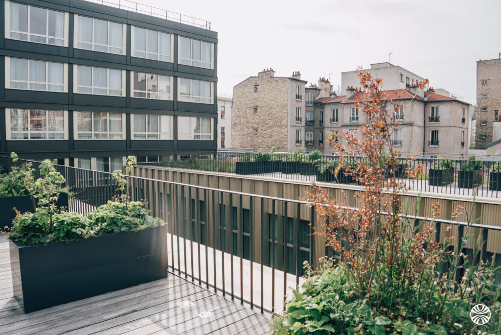 La visite se poursuivra jusqu’à la cuisine partagée, la salle de sport (avec sauna intégré), l’espace de coworking, le jardin privatif et l’impressionnant rooftop végétalisé, et sa serre attenante. D’ici quelques semaines, vous pourrez aussi vous essayer au karaoké, ou goûter les cookies de la maison We Dough.