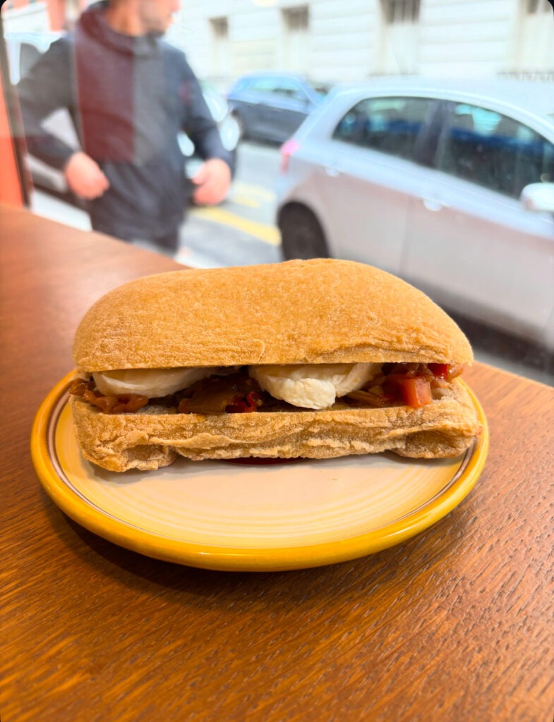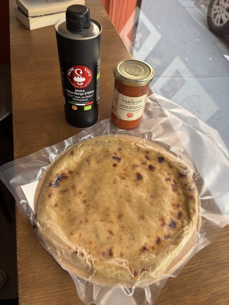 Derrière chaque nouveauté, il y a une histoire à raconter. Les paninis (caponata, pestato d’olives, confits d’oignon câpres et olives…) sont garnis mozzarella de bufflonne ou ricotta au lait cru du Perche (donc artisanales et sans ferments ajoutés). Le golden latte (5,50 €) composé de curcuma, gingembre, poivre et miel (de chez Epices Shira) boostera vos défenses immunitaires. Enfin, les fonds de pizza (5,80 €) provenant de la pizzeria Pizza Viva (la dernière adresse ouverte par Adriano dans le 5e arrdt) ne demandent qu’à être recouverts de bonnes choses et passés 5 minutes au four. Face à tant d’options, impossible de venir “juste acheter le pain”.