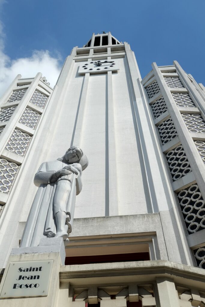 « Un chantier de restauration de l’église Saint-Jean-Bosco est à l’étude actuellement auprès de l’agence Point 05 sous la direction de Charlotte Langlois, architecte du Patrimoine, et Juliette Selingue, architecte collaboratrice. Édifiée entre 1933 et 1938 grâce au financement des Chantiers du Cardinal, l’église Saint-Jean-Bosco va voir sa restauration financée à nouveau par cette même association créée en 1931.