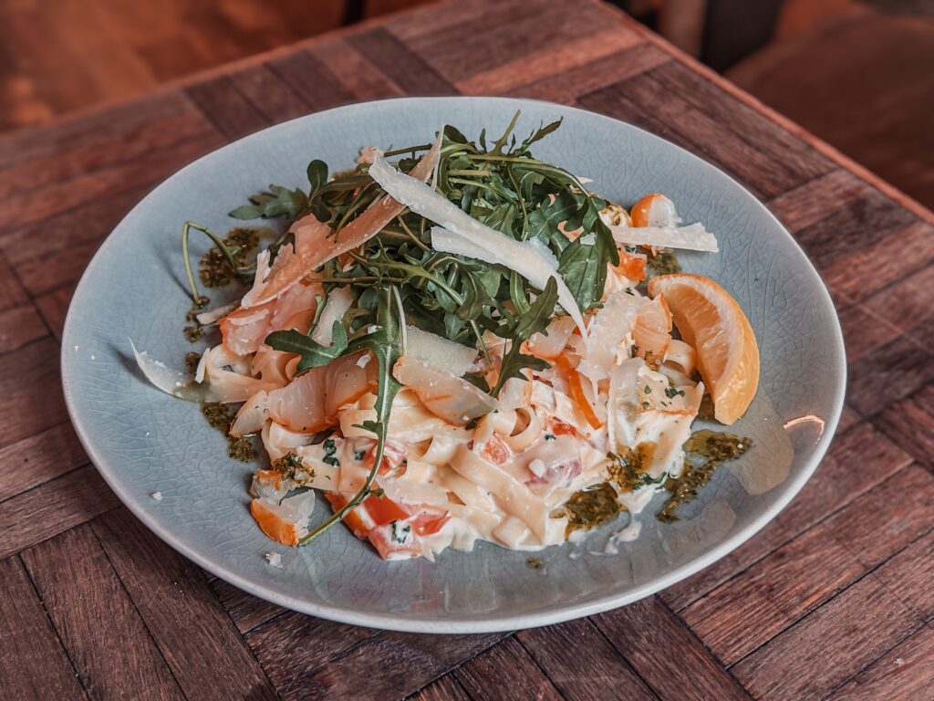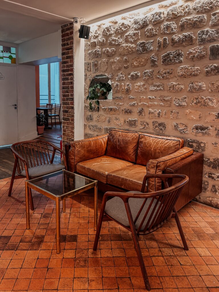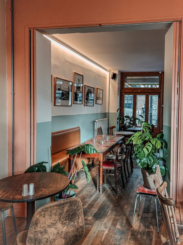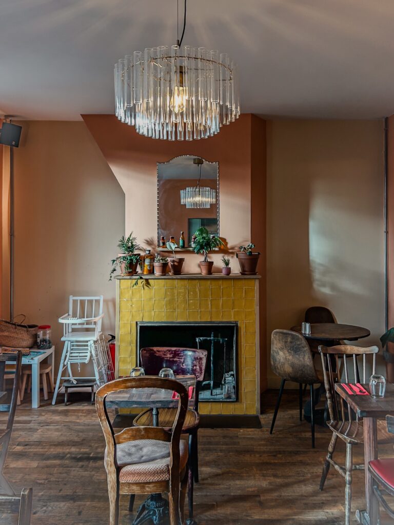 Présent sur le store du café et à l’intérieur, le “vert arsenic” a inspiré Clara sa femme. Pour la déco, elle a misé sur le bois clair, les plantes, la cheminée, et le mobilier intégralement chinés, façon maison de campagne chic. (Ne manquez pas les vitraux d’Atelier Vitali, un talent local). Dans les assiettes, place à une cuisine française maison et soignée, du petit-déjeuner au dîner. À goûter en ce moment : rillettes d’agneau, scotch eggs, tarte tatin à la betterave et oignons caramélisés, tagliatelles au haddock… avant de finir sur un cheesecake ou une pavlova.