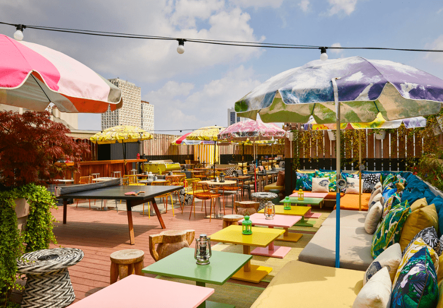 On prend de la hauteur sur le rooftop du Mama Shelter