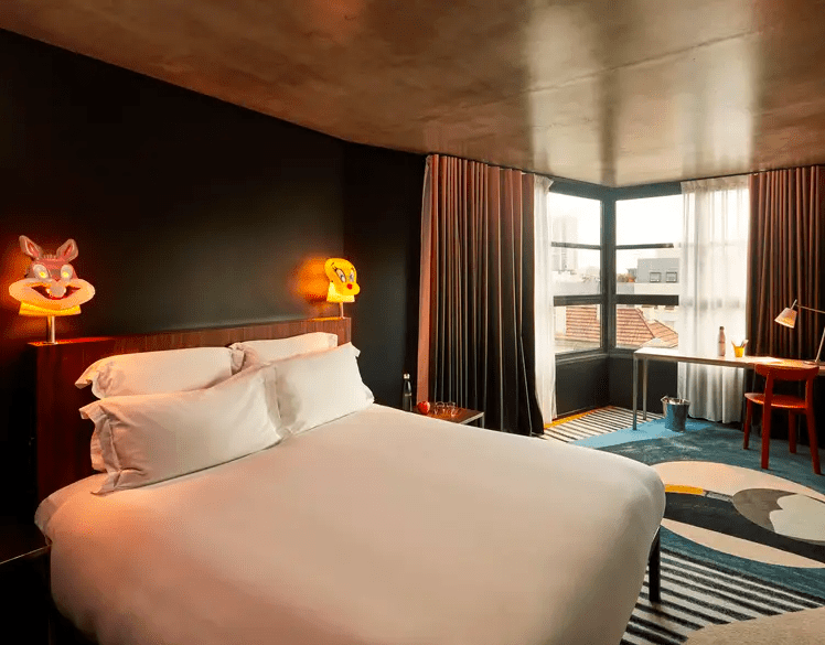 Disponible à partir de 169 €, elle comprend d’une chambre pour deux personnes, deux “love cocktails”, un late check-out à 14h, deux petits-déjeuners et une box “Sexy Mama” pour pimenter la nuit. De quoi s’offrir une parenthèse olé-olé et couper du métro-boulot-dodo. Les chambres doubles les plus simples démarrent, elles, à 99 €, pour répondre à l’idée de “luxe démocratique” cher à la marque.