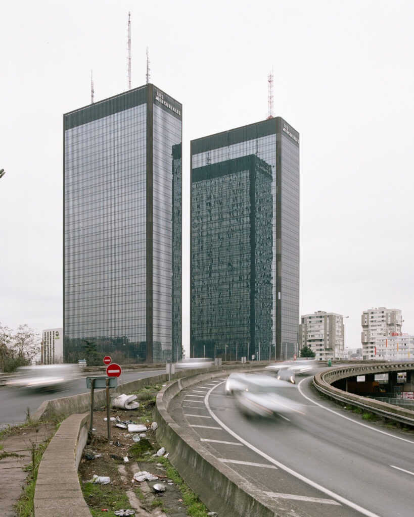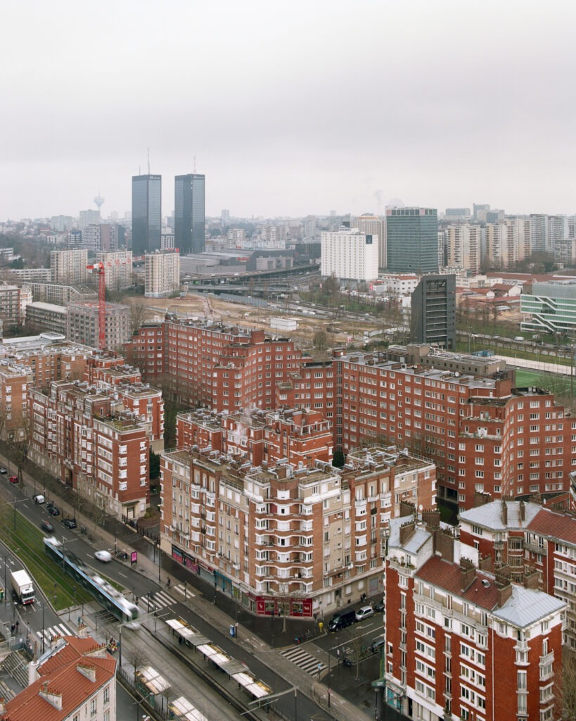 « Je ne suis pas super convaincu par les vues aériennes, ça manque de contraintes. C’est d’ailleurs tout l’objet de mes photos, je raconte les tours, mais aussi le territoire dans lesquelles elles s’inscrivent : une typologie variée qui va du terrain vague en mutation au parc public en passant par une vue derrière les arbres ou entre deux immeubles. Ces tours sont invraisemblables avec leur contexte, il y a des rapports d’échelles hyper surprenants, j’adore jouer avec ça, la topographie, l’urbanisme… J’ai d’ailleurs rusé sur pas mal de vues, en rentrant chez des gens, parfois inconnus, en grimpant sur des échafaudages, etc »