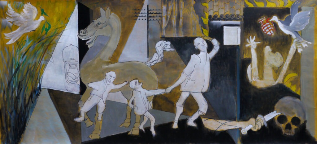 Une œuvre à la croisée de l’intime et de l’universel. Bertrand Bellon met face à face peinture et vie, mémoire personnelle et horizon collectif, objets du quotidien et paysages lumineux. De ses premières peintures de fruits, fleurs et théières aux grandes fresques qui habitent Ménilmontant, et nourri par ses multiples voyages en Chine et au Maroc, cette exposition révèle l’ampleur de son œuvre où chaque tableau devient un fragment du monde, une peinture universelle, contemporaine et profondément humaniste.