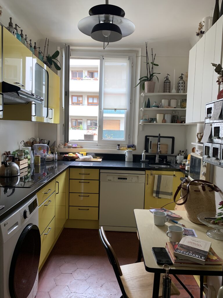 Clara a eu plusieurs vies professionnelles, la pub, les médias, l’entrepreneuriat et aujourd’hui, une prestigieuse maison d’édition dont elle a assisté le Président. Elle est aujourd’hui chargée de la coordination de la programmation dans cette même maison. Une revanche sur la vie pour cette amoureuse des livres ; une personnalité singulière, dans un immeuble qui l’est autant. Son appartement a évolué au fil des ans, réaménagement du salon, de la cuisine (jaune en formica), salle de bain, balcon cosy… Le tout parsemé d’objets chinés, et de photographies, l’autre passion de Clara avec les voyages.