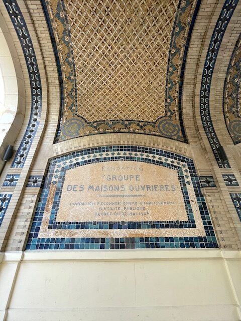 Construits en 1913 par l’architecte Auguste Labussière, ces bâtiments en briques “présentent toutes garanties au point de vue de l’hygiène”, précise une inscription à l’entrée. Alors que les familles ouvrières s’entassent jusqu’ici dans des taudis, ces immeubles se voient appliquer les théories du mouvement hygiéniste. En s‘organisant autour de vastes cours apportant de l’air et de la lumière, et en mettant à disposition dans des espaces communs, des douches, des laveries et une bibliothèque.